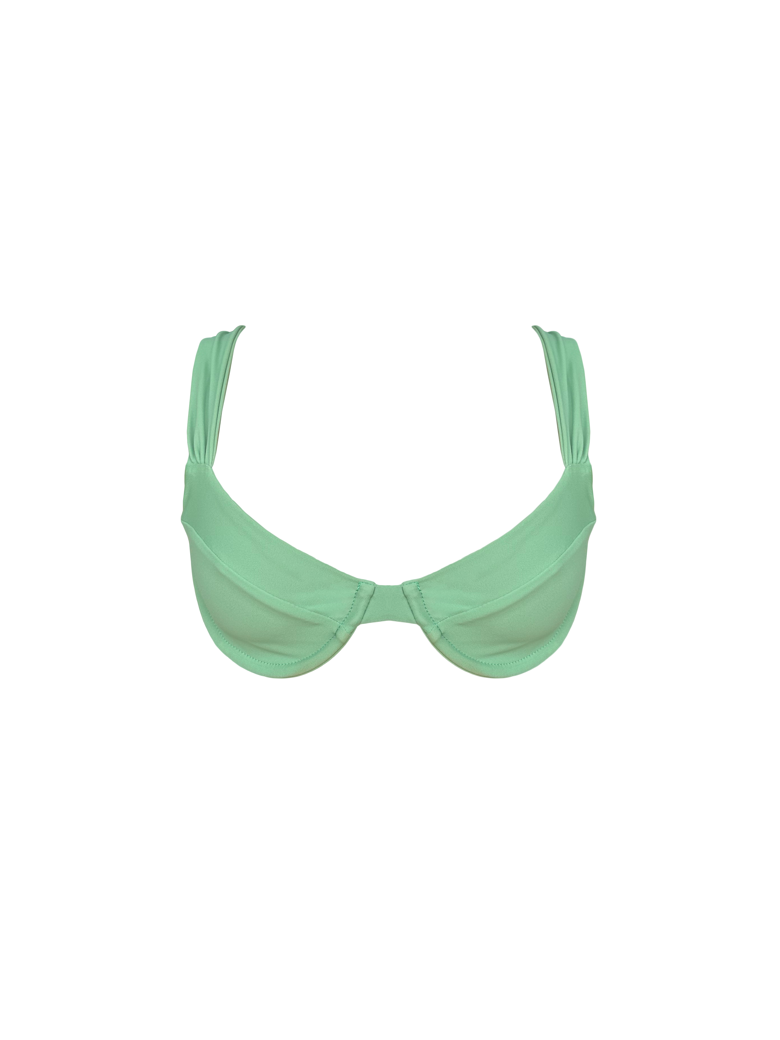 Underwire soft mint green top with adjustable straps. This design, crafted from American recyclable Reclaim Prime fabric, provides superior support and all-day comfort thanks to its soft, breathable construction. Ensures a supportive and comfortable fit for lasting wear. All hardware are gold-toned.
