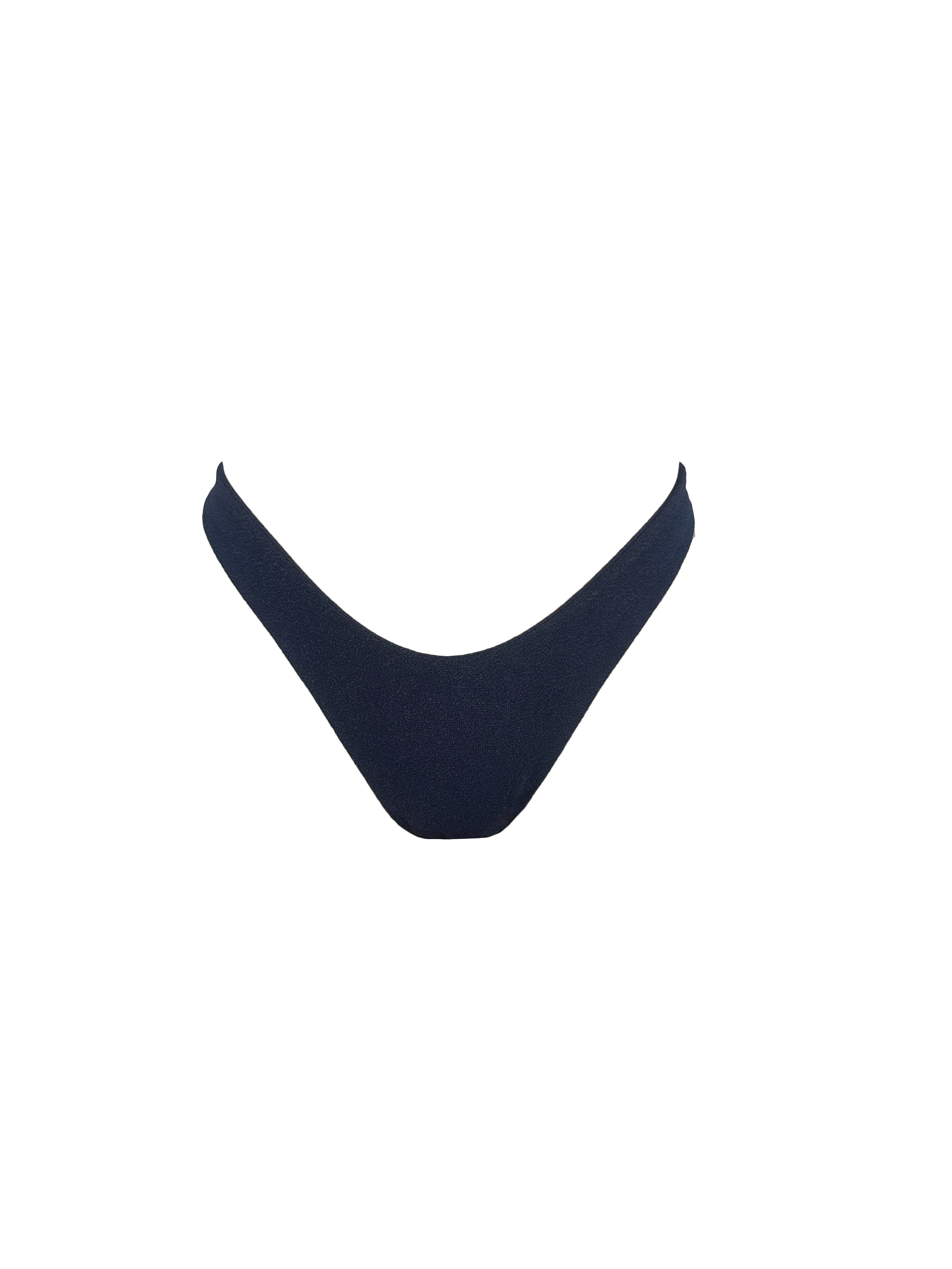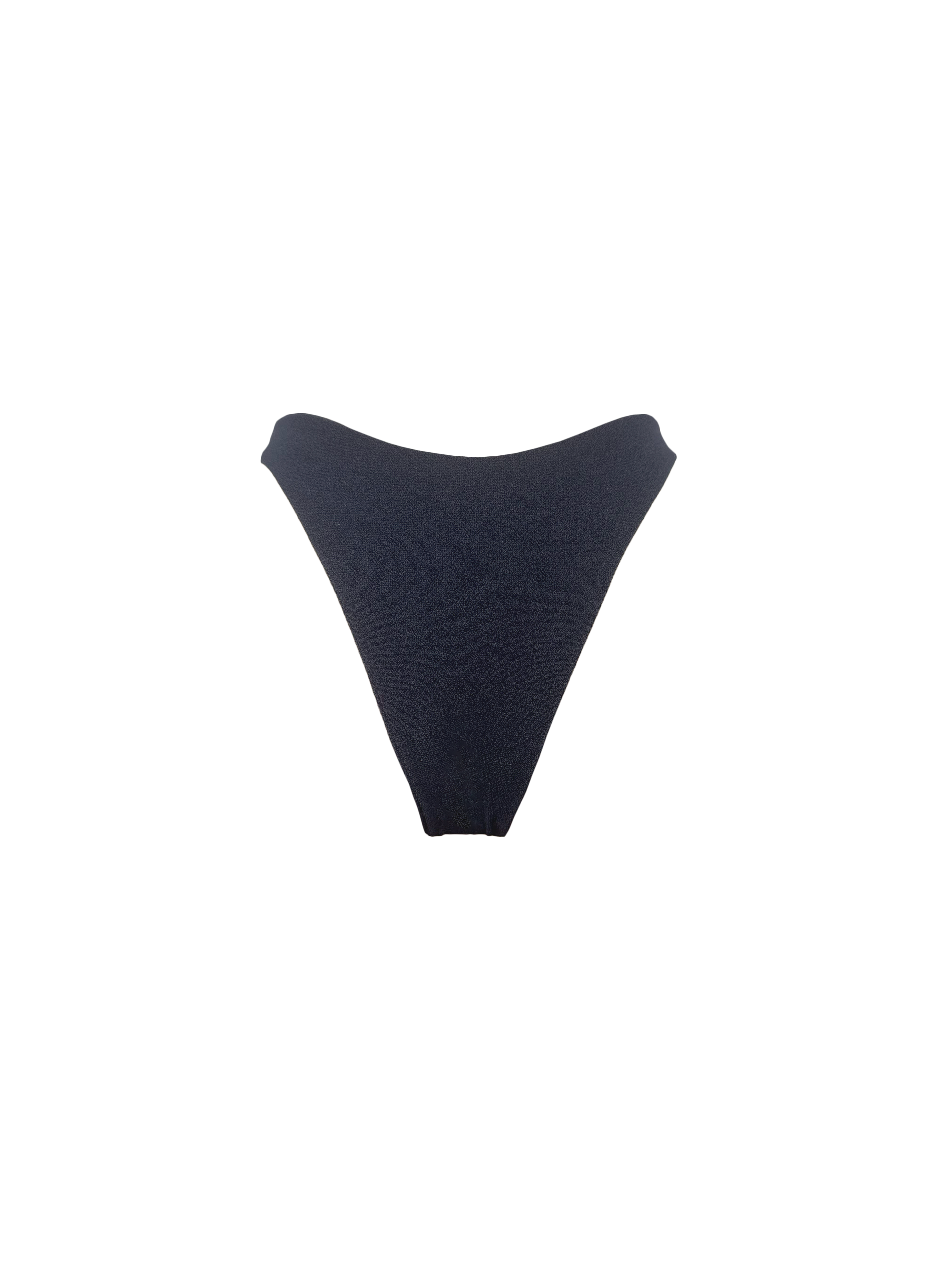 Classic high-waisted bottom with cheeky coverage, offering a timeless silhouette that flatters the waist and elongates the legs. Crafted from Italian eco-friendly Carvico® Econyl fabric with a towel-like texture.